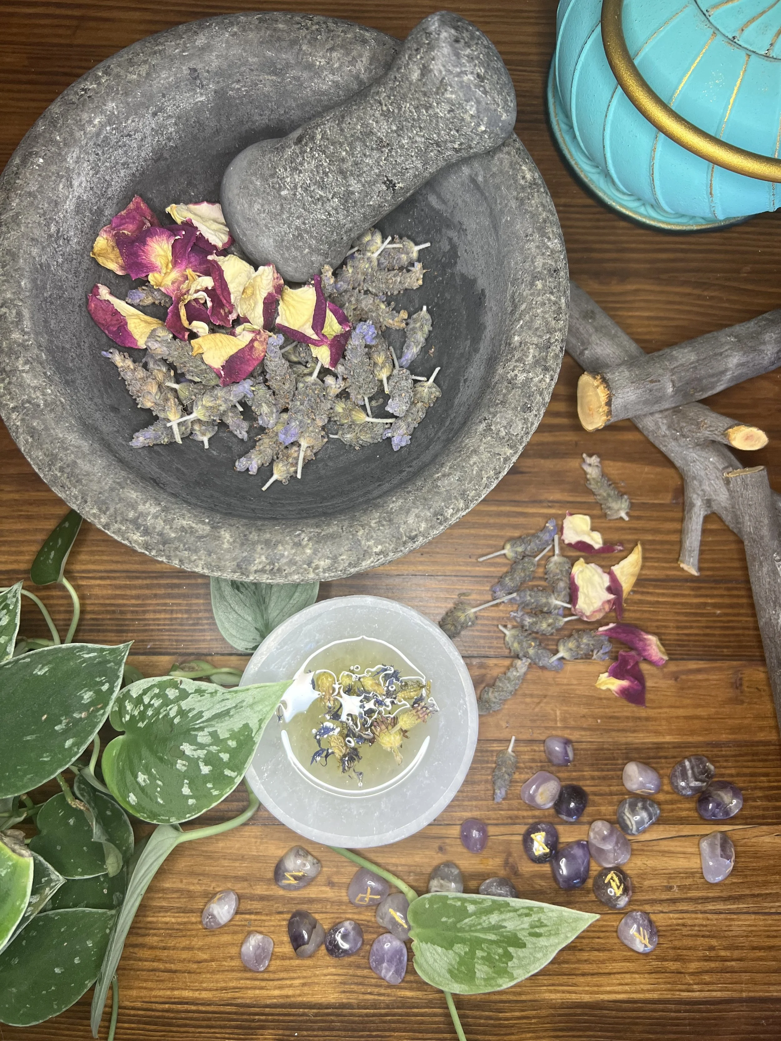 Rooted in folk tradition and elemental connection, my apothecary offerings are both a gift and a guide. I craft small-batch oils, infusions, and herbal preparations with care—each designed to support ritual, healing, and everyday well-being. But just as much as I love creating, I love teaching. Through seasonal workshops and personalized guidance, I help others learn the skills to craft their own plant-based remedies, reconnecting with the land, their intuition, and the ancient rhythms of earth-born medicine.